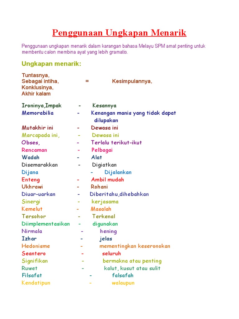 Kosa Kata Dan Ungkapan Menarik Dalam Penulisan Karangan Spm Pdf